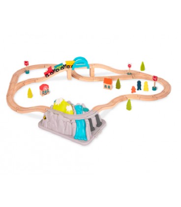 Choo-choo! This 47-piece wooden train set has everything you need for an exciting mountain adventure: 28 double-sided tracks, 3 magnetic wagons, and colorful accessories such as trees, a train station, a police office, warning signs, people, and a mountain lid of course! Parents will also be happy to know that it comes in a bucket to keep everything in its place. 28 double-sided train tracks to assemble in endless configurations
