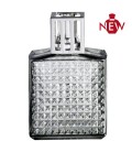 A new shape of glass lamp with a striking and imposing design. The diamond pattern is reminiscent of ancient decanters. Its shiny and syrupy colour captures the light and enhances the lamp's texture. Its silver-coloured square mounting enhances the model. A catalytic lamp that will elegantly fit into our interiors.