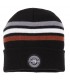 • Soft and warm knit• Double layer• Folded hem• Striped combo• Woven badge