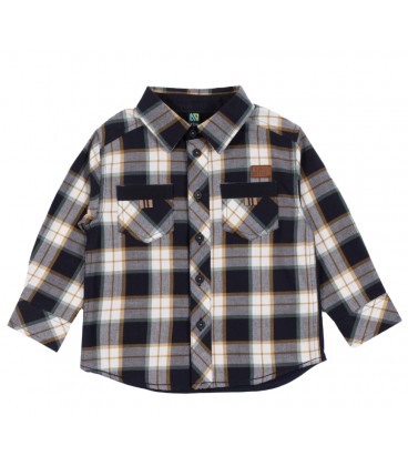 Plaid flannel shirt. Long sleeves. Style with collar, button placket and chest pocket. Jersey back.