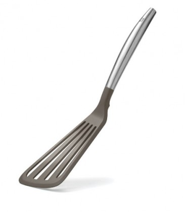 Cette spatule multi-usage en nylon RICARDO est parfaite pour retourner les poissons et les galettes. Son rebord mince se glisse facilement sous les aliments et ses fentes permettent aux liquides et au gras des aliments de s’égoutter. On aime son manche ergonomique en acier inoxydable courbé qui assure une bonne prise, en plus de s’insérer dans les poignées de toutes les poêles et casseroles RICARDO.