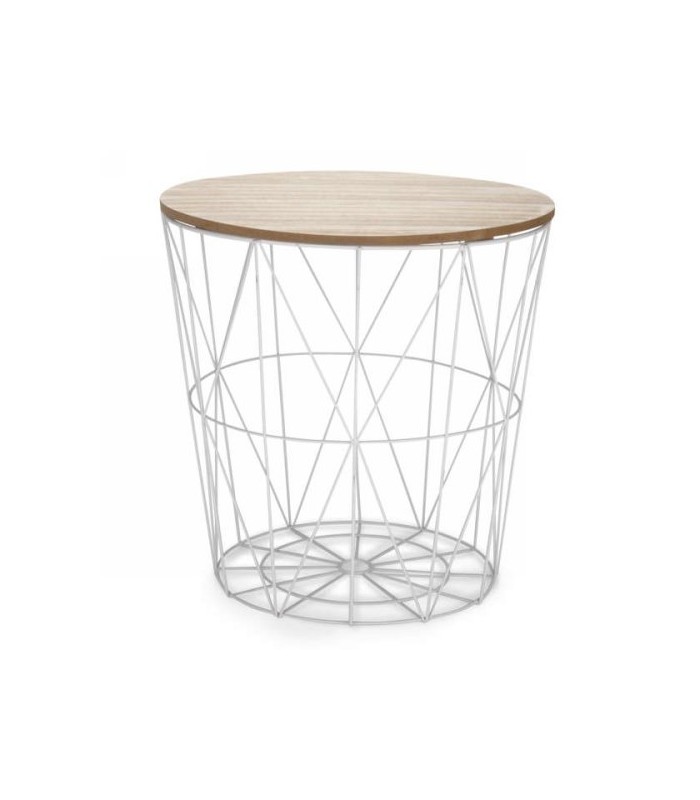 PANIER DE RANGEMENT MÉTAL BLANC BOIS...