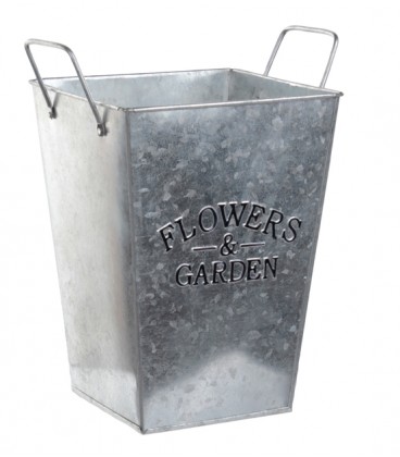 Pot pour fleurs de couleur argent en métal galvanisé.