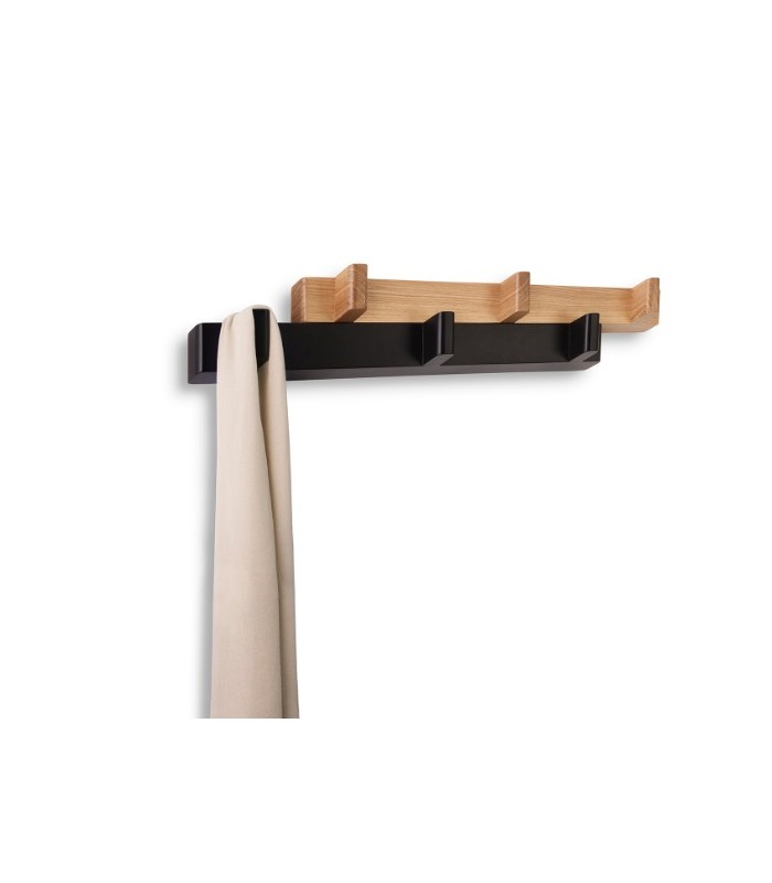 Crochets en bois qui se glissent pour doubler sa fonctionnalité de 3 à 6 crochets. Très design!