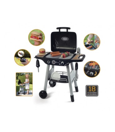 - 18 accessoires inclus: un hamburger à assembler, des aliments, des ustensiles pour barbecue, un briquet à gaz cric crac.